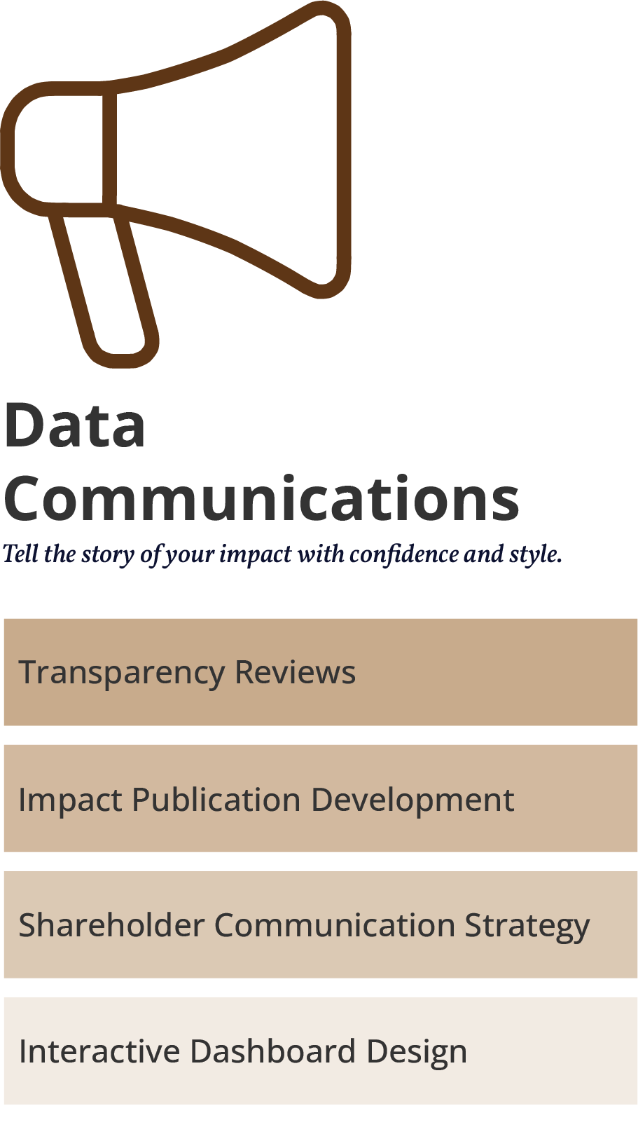We design and implement robust data collection protocols to assess programmatic, operational, and organizational initiatives.